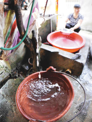 在华容[HuaRong]县,居民用水桶接水备用