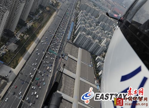 高峰时段警用直升机[ZhiShengJi]将沿着中环、南北高架、延安高架、内环高架及上海市“三纵三横”主干道飞行,空中交警通过电台将空中观察到的道路交通[JiaoTong]情况及时报告地面指挥中心,并通过高音喇叭及时纠正违法行车行为。同时,直升机[ZhiShengJi]上的数字图传系统将空中拍摄到的交通[JiaoTong]情况实时传回至市公安局指挥中心交通[JiaoTong]指挥台,为调整方案、迅速指挥疏导交通[JiaoTong]堵点提供第一手的资料。