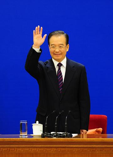 3月14日,国务院[GuoWuYuan]总理[ZongLi]温家宝[WenJiaBao]在北京人民大会堂与中外记者[JiZhe]见面[JianMian],并回答[HuiDa]记者[JiZhe]提问。这是温家宝[WenJiaBao]总理[ZongLi]向记者[JiZhe]致意。新华社[XinHuaShe]记者[JiZhe] 任勇 摄
