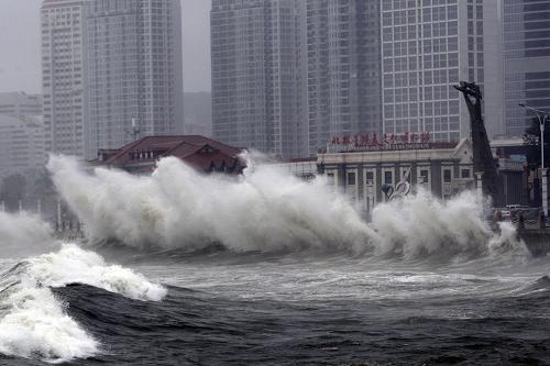 8月8日,烟台市滨海出现大浪。当日, 受强热带风暴“梅花”影响,山东省烟台市出现暴雨,局部大暴雨,海面风力达到9至10级,阵风达到11至12级。新华社发(申吉忠 摄)
