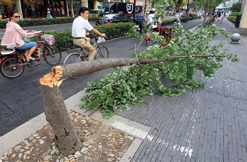 8月6日下午,一场风雨过后,杭州中山北路上的一棵树被大风吹断。新华社发(吴煌 摄)