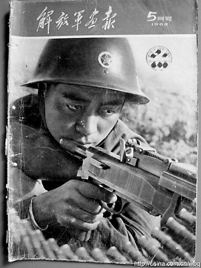 头戴钢盔,手握枪托,瞄准镜后坚毅的目光……几乎每一位看到《解放军[JieFangJun]画报[HuaBao]》1962年5月号封面[FengMian]的人们都要发出一声“太像了”的感慨。这张图片[TuPian]最初在网络上流传的时候,甚至一度被网友[WangYou]认为是将影星王宝强的照片[ZhaoPian]PS到某旧期刊上的产物。