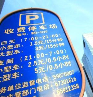 朝阳门外一停车[TingChe]场收费[ShouFei]牌已更新。记者[JiZhe] 王颖/摄