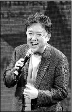 作为摇滚[YaoGun]迷的于谦在台上唱起崔健的经典歌曲。 本报记者 王俭 摄
