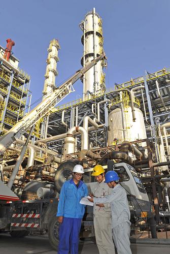 检修人员冒着酷暑对烯烃项目MTP装置进行技改检修(7月14日摄)。近日,神华宁煤集团烯烃公司员工在灵武市宁东能源化工基地冒着35℃高温坚守检修技改一线,紧抓工期,保证检修技改工作顺利进行,为即将展开的下半年生产计划打下坚实基础。新华社记者 王鹏 摄