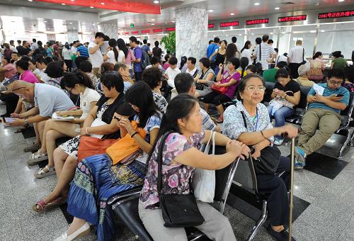 北京朝阳区房屋登记发证大厅内挤满了等候办理交易手续的人(8月24日摄)。据了解,最近一个月来,每天都有数百人前来北京朝阳区房屋登记发证大厅办理房屋交易手续。新华社记者 罗晓光 摄