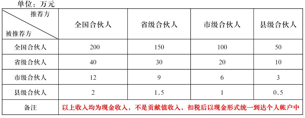 推介获利是合伙人付出劳动所获得的收入,也就是推介其他合伙人所获得的现金收入;根据推荐人级别的不同分别领取5%至20%的推介提成,并且推荐成功第二天即到达推荐人的提现余额帐户。