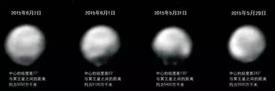 2015年5月29日至6月2日,他拍摄的冥王星照片: